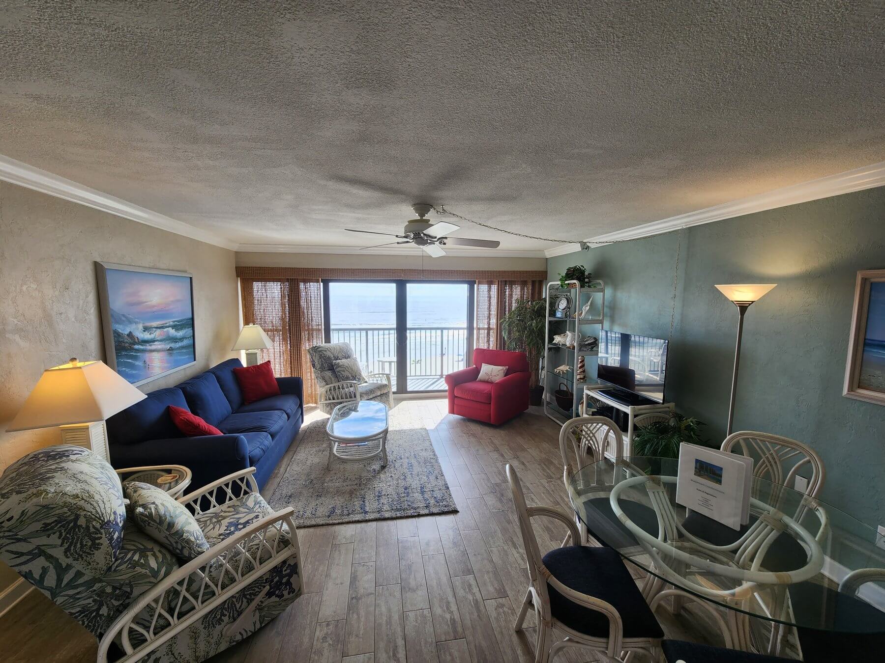 At 1570 square feet, our Deluxe 2s are among the most spacious 2BR condos on the beach. Renovations over time have opened these up to create generous LR/DR space and dramatic ocean views, making them a perfect choice for those who like to entertain. Chic to beachy, these are also popular with those who need extra sleeping capacity – as many have made space for extra bunk beds or Murphy Bed. * Advanced Reservations are strongly recommended